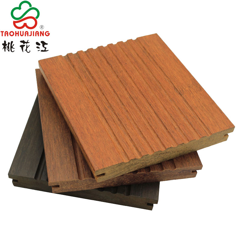 THJ strand woven bamboo is made from compressed bamboo fibers and carbonized under high temperature. A unique patented technology of high carbon anti-corrosion provides THJ strand woven bamboo with very durable class to be compliant with the EU safety standards and the compression promotes the stability and hardness. At the same time, it has the characteristics of environmental protection and beauty, anti-corrosion, fireproof and anti-slip, no deformation and no cracking, etc. THJ strand woven bamboo can be connected with an unlimited number of boards lengthways and this can only be done with very stable materials. It is suitable for outdoor application, even under rather tough condition.