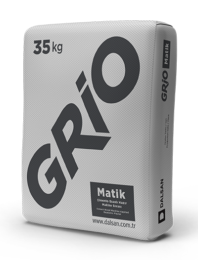 GRİO Matik, is a cement-based machine- applied ready-mixed plaster. It is applied indoors and outdoors on brick, aerated concrete, concrete and ceiling surfaces by spraying using a plastering machine. GRİO Matik is highly adhesive and is easy and quick to apply. GRİO Matik is resistant to water and moisture.