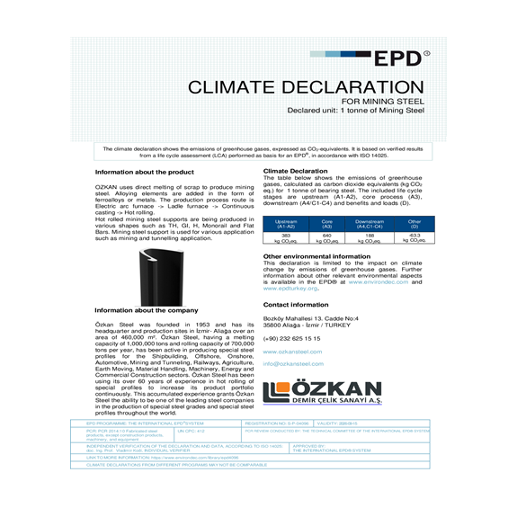 Özkan Steel was founded in 1953 and has its headquarter and production sites in İzmir-Aliağa over an area of 460,000 m². Özkan Steel, having a melting capacity of 1,000,000 tons and rolling capacity of 700,000 tons per year, has been active in producing special steel profiles for the Shipbuilding, Offshore, Onshore, Automotive, Mining and Tunneling, Railways, Agriculture, Earth Moving, Material Handling, Machinery, Energy and Commercial Construction sectors.