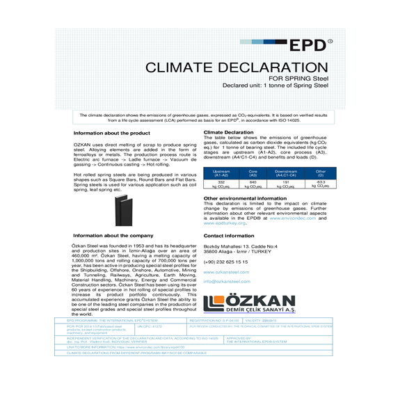 Özkan Steel was founded in 1953 and has its headquarter and production sites in İzmir-Aliağa over an area of 460,000 m². Özkan Steel, having a melting capacity of 1,000,000 tons and rolling capacity of 700,000 tons per year, has been active in producing special steel profiles for the Shipbuilding, Offshore, Onshore, Automotive, Mining and Tunneling, Railways, Agriculture, Earth Moving, Material Handling, Machinery, Energy and Commercial Construction sectors.