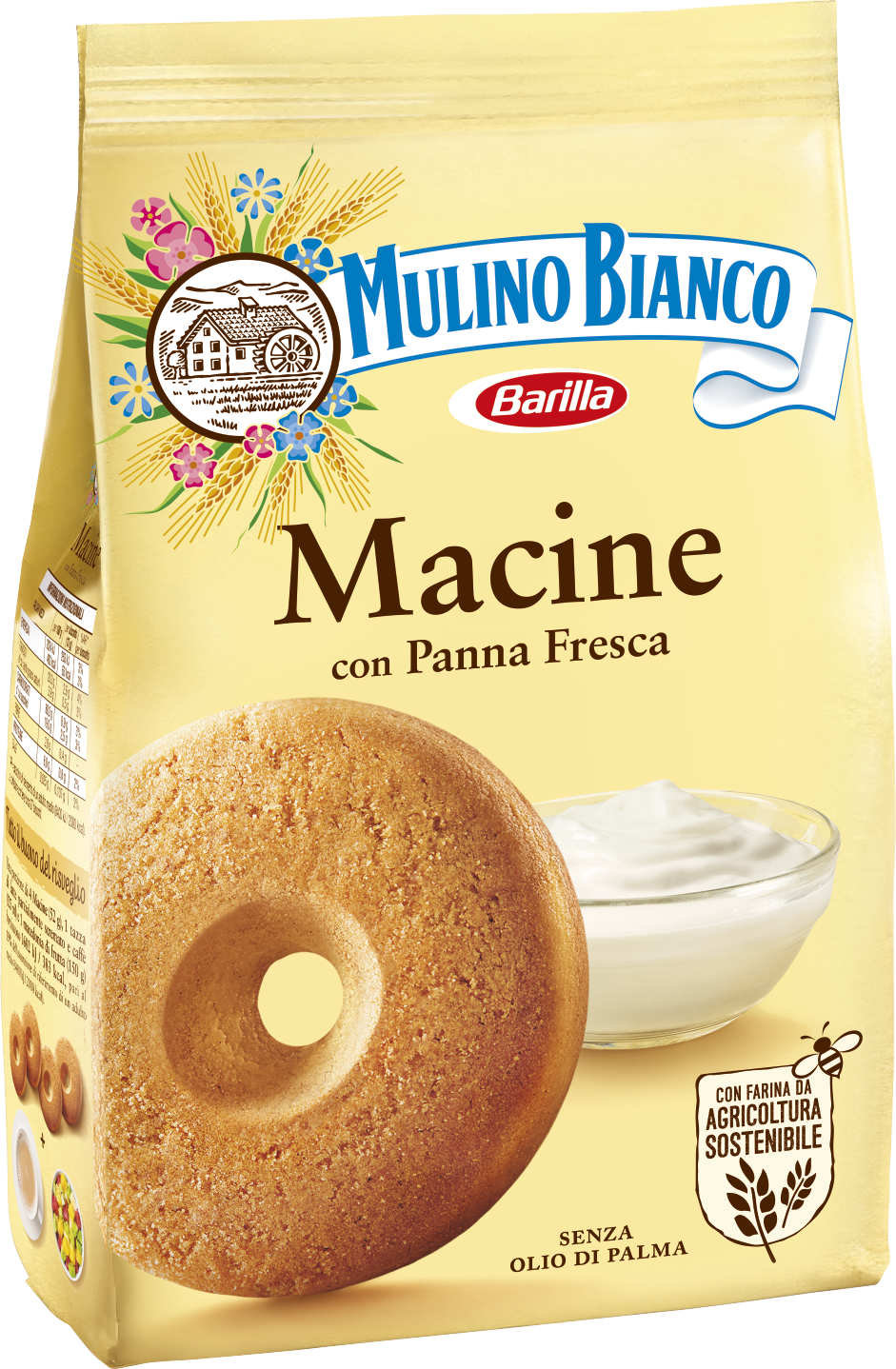 Macine are Italian biscuits prepared with simple ingredients and enriched with milk cream, produced in two Barilla bakery plant (Castiglione delle Stiviere, MN, and Melfi, PZ). They are packed in 350, 800 and 1000 grams formats and are ready for the consumption. For more information about the product see https://www.mulinobianco.it/macine.