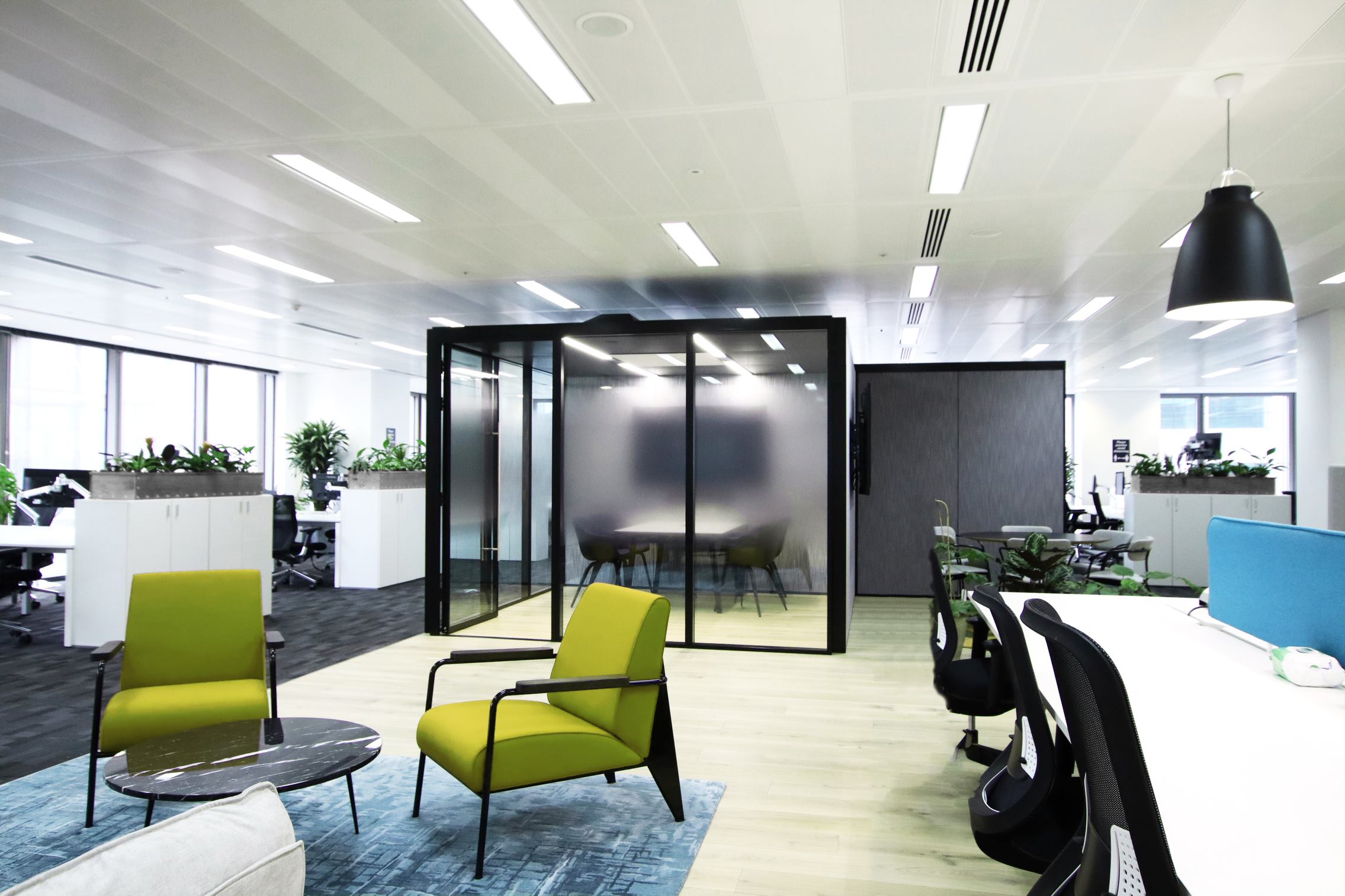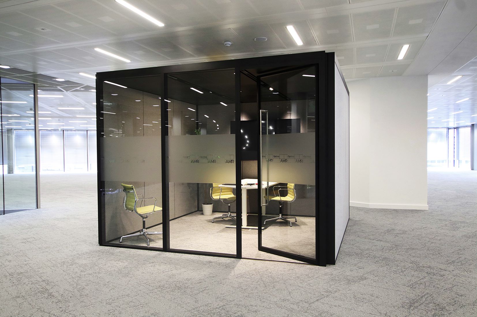 Adaptable Meeting Rooms are freestanding rooms that can be put up, taken down or moved quickly and efficiently thanks to Optima's unique “twist and lock” functionality. AMR are assembled at the project site and the modules which form the structures have been standardised and can therefore be re-used.