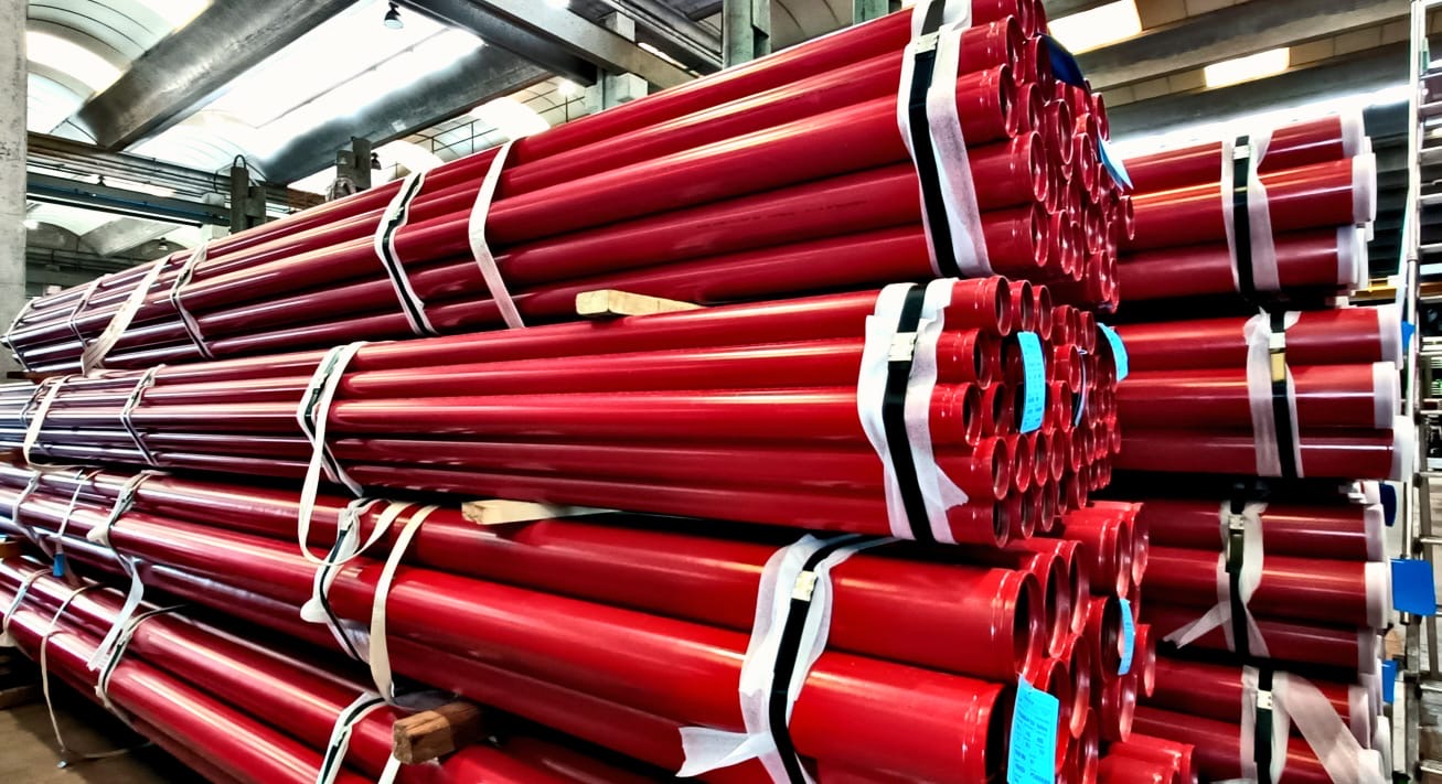 Water painted pipes, epoxy or polyester coated pipes with plain, Victaulic grooved or threaded & coupled ends to be used in constructions, fire-fighting, civil and industrial installations, methane gas distribution network.