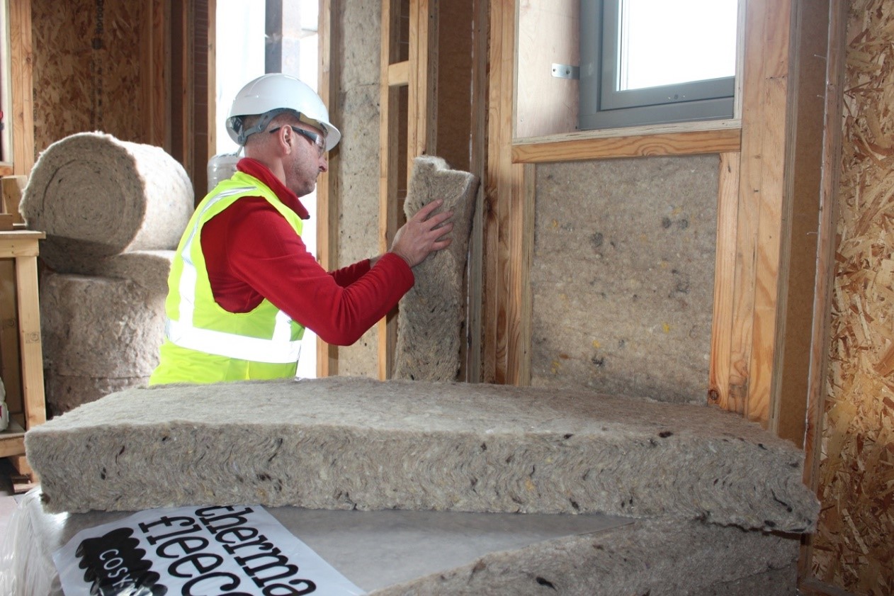 Thermal and acoustic insulation made using British sheep’s wool combined with recycled PET lofting agent and thermally-bonded using a PET bi-component binder to prevent slumping in service. All Thermafleece products are manufactured to ISO 9001 and wool is processed to ISO 14001.