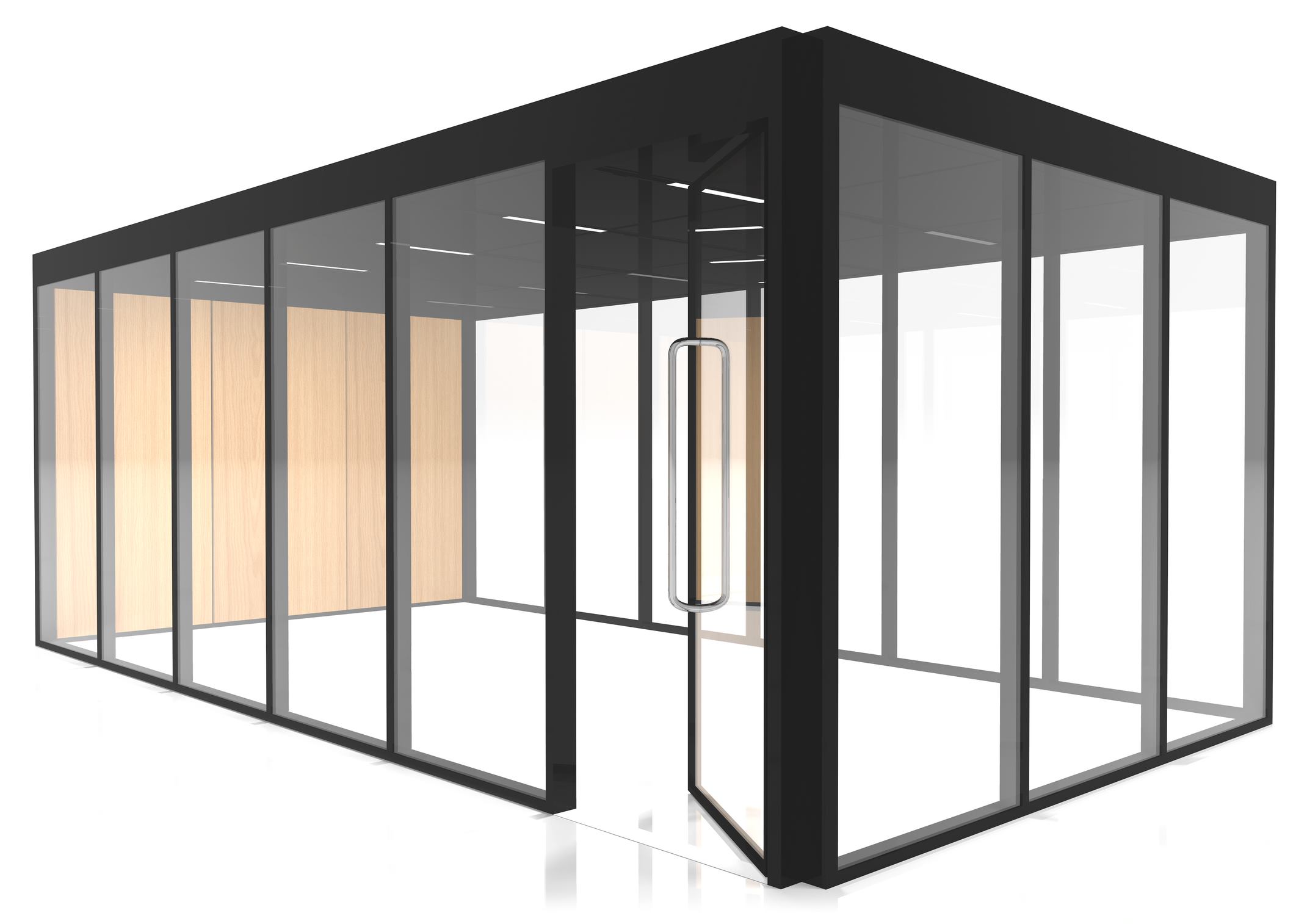 This EPD applies to an Optima 3m x 6m AMR with two 6m single-glazed walls (10.8mm laminated glass); one 3m wall comprising fabric-covered panels and one 3m wall comprising two laminate panels and one magnetic whiteboard panel (each panel 1m wide). The fabric used for the fabric-covered panels is 100% recycled polyester. The AMR includes an Optima Edge Symmetry door in the corner of one glazed wall. Internal lighting is provided by 15 LED lighting units arranged along five beams; power is supplied to the lighting and ventilation units through a single consumer box. This AMR is equipped with two top-mounted ventilation units. The AMR ventilation system is a dual-fan design that allows air to flow continuously into the room. The unglazed walls are filled with 50mm thick acoustic insulation.