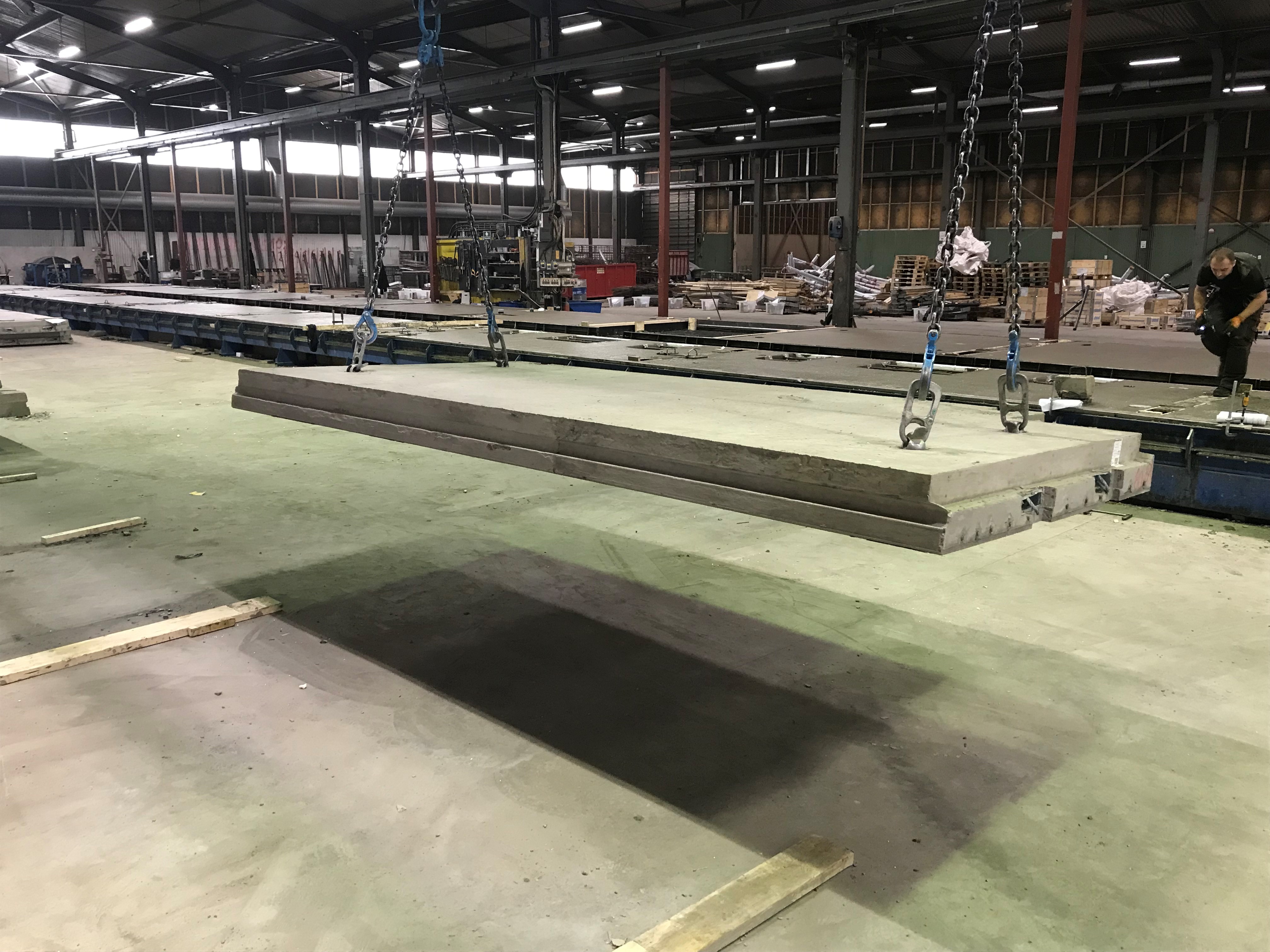 Solid slab elements are used in different varieties and are reinforced with steel bars and pre-stressed steel wires. The elements are customised for individual projects and are produced after requirements specified by the customer. This can include specifications for recesses and other details for electrical wires, drains and ventilation pipes. In the first part of the process, the product is optimized in terms of the lifecycle for the building.