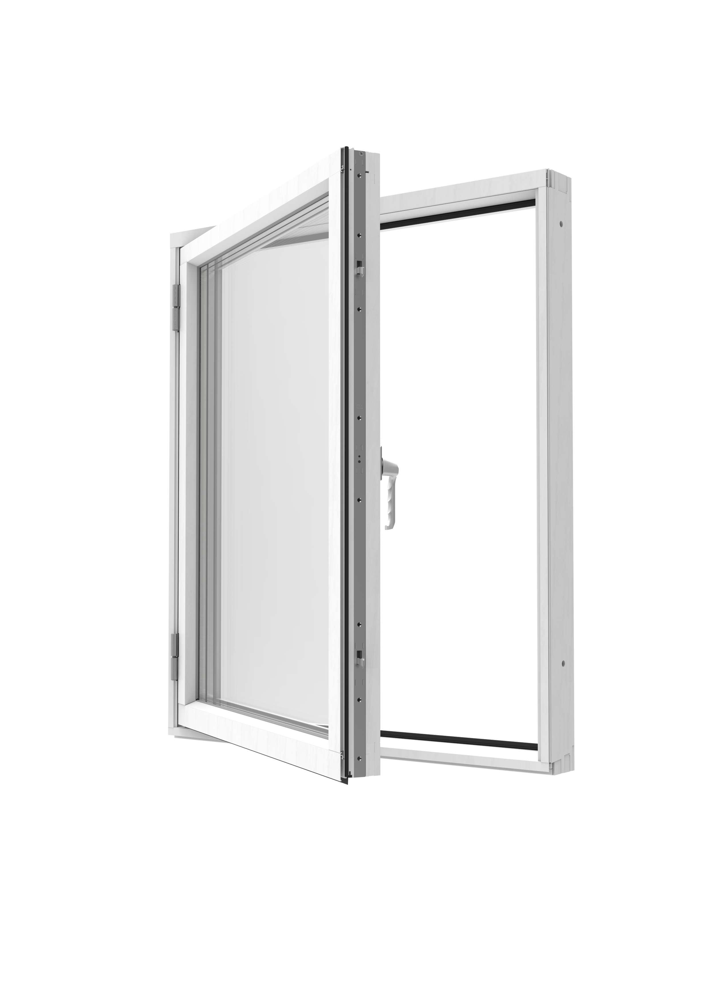The frame and sashe consist of impregnated pine which is clad with outer aluminum cladding to ensure long life cycle. The insulating glass consists of three glasses to achieve very good energy management of buildings.