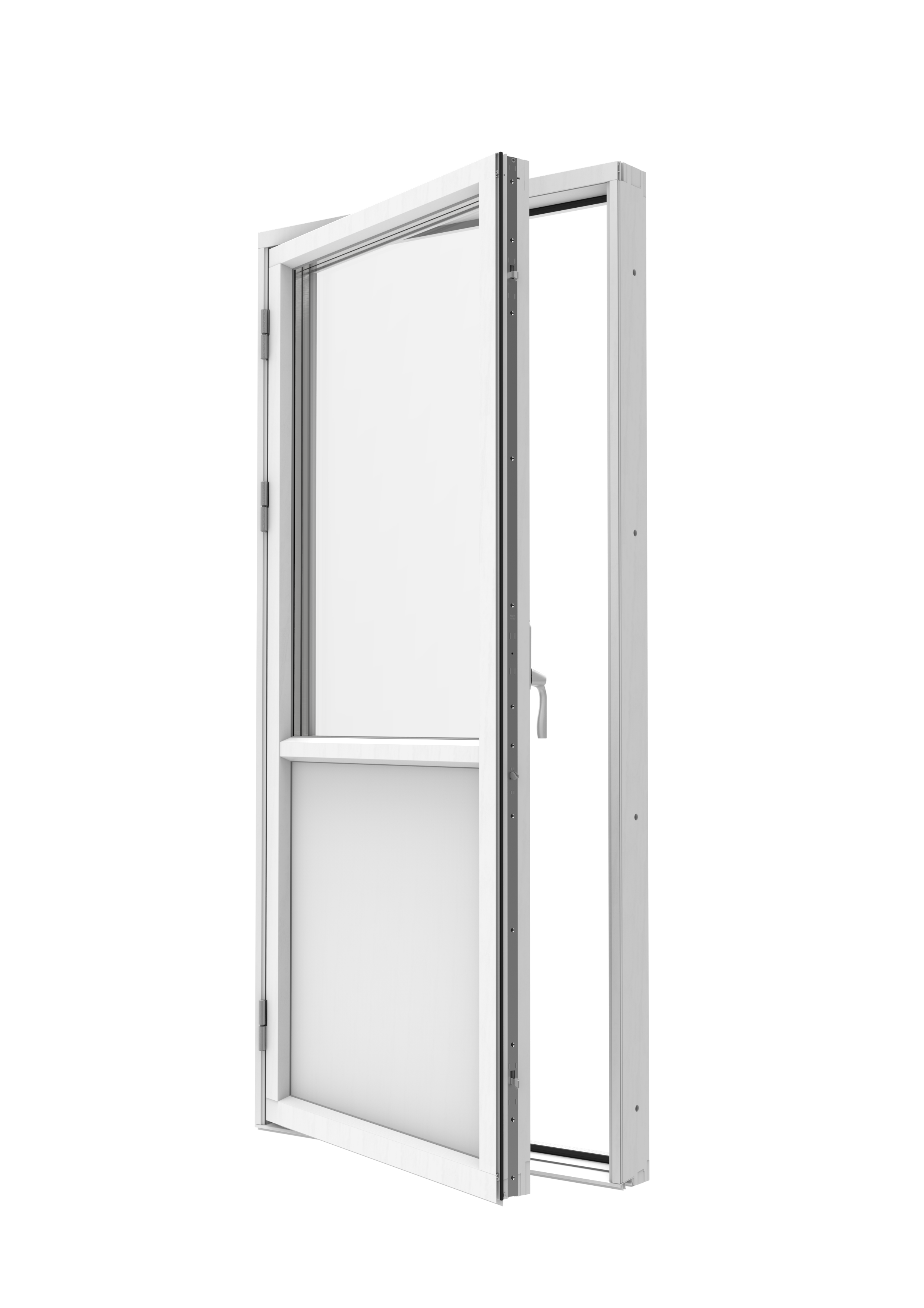 Elitfönster Original Alu Balcony door is a balcony door with 3-glazed insulating glass and filling, the wooden frame are clad with durable aluminum on the outside. The frame and sashe consist of impregnated pine which is clad with outer aluminum cladding to ensure long life cycle. The insulating glass consists of three glasses to achieve very good energy management of buildings. The casement is side hung and opens outward.