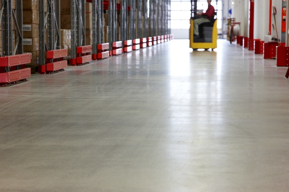 Teqton System Floor is made as a joint free roller compacted concrete floor with a polymer reinforced wear layer on top. The base layer is an 18cm thick cement stabilised gravel with no iron reinforcements. The top Wear layer is a 2cm thick polymer reinforced concrete consisting of granite, sand, cement and liquid polymer. With a standard thickness of 20cm the Teqton System floor is made without any dilatation joints and with no fibre or iron reinforcement.