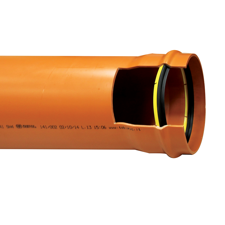 The FITT Sewer range offers pipes in PVC-U, also available with integrated jointing system, for sewage and non-pressure industrial drains. FITT Sewer and FITT Sewer EVO are equipped respectively with a supplied EPDM rubber jointing system and an integrated non-removable pre-inserted gasket. The latter, developed in collaboration with Trelleborg Forsheda, consists of a sealing element, EPDM or TPE, co-moulded with a fibre-reinforced polypropylene stiffening ring.