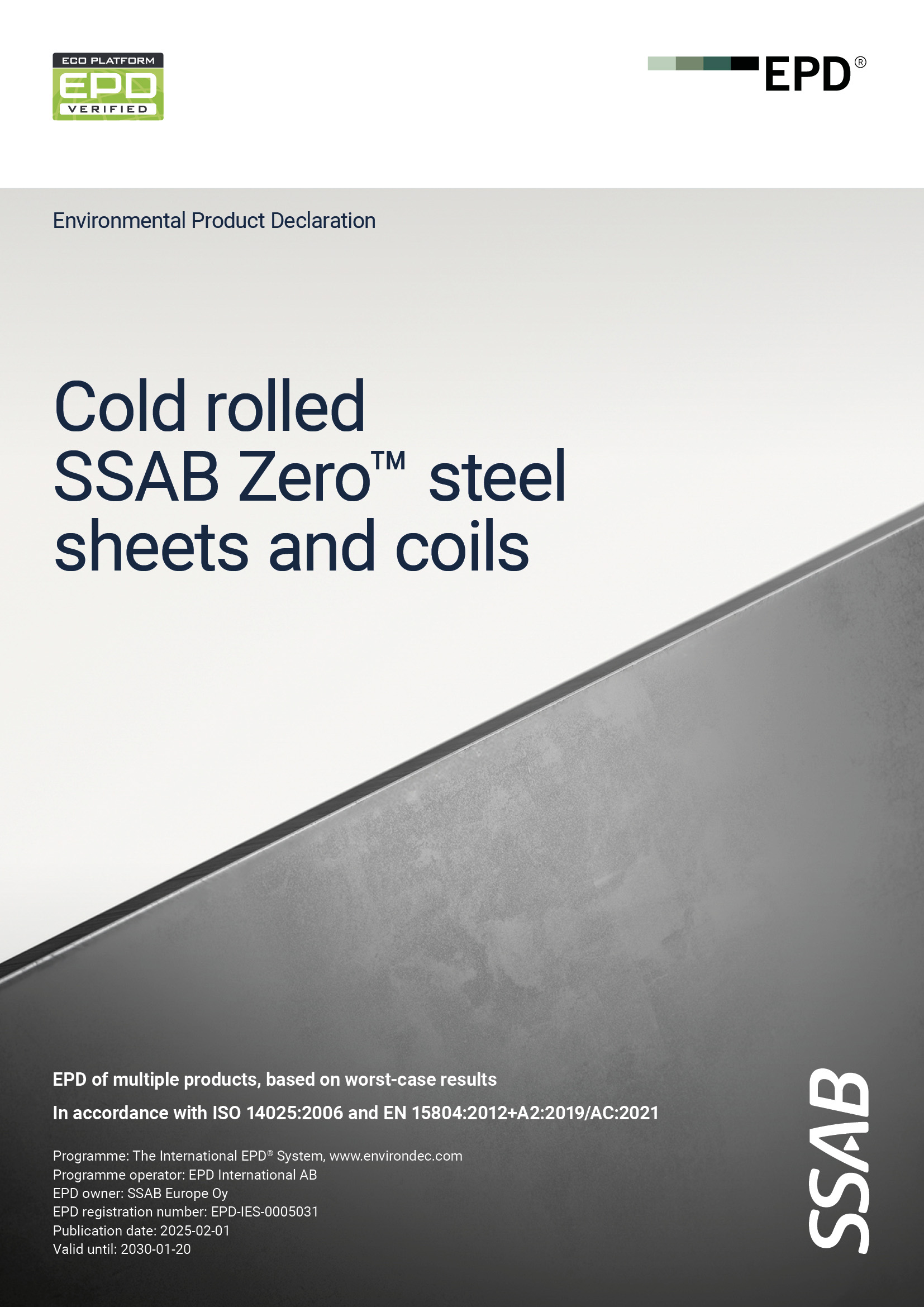 The scope of this EPD is Cold rolled SSAB ZeroTM steel sheets and coils. SSAB ZeroTM is made using 100 % recycled steel, of which over 90 % comes from external scrap (post- and pre-consumer) and the remainder from internal scrap from the manufacturing process.