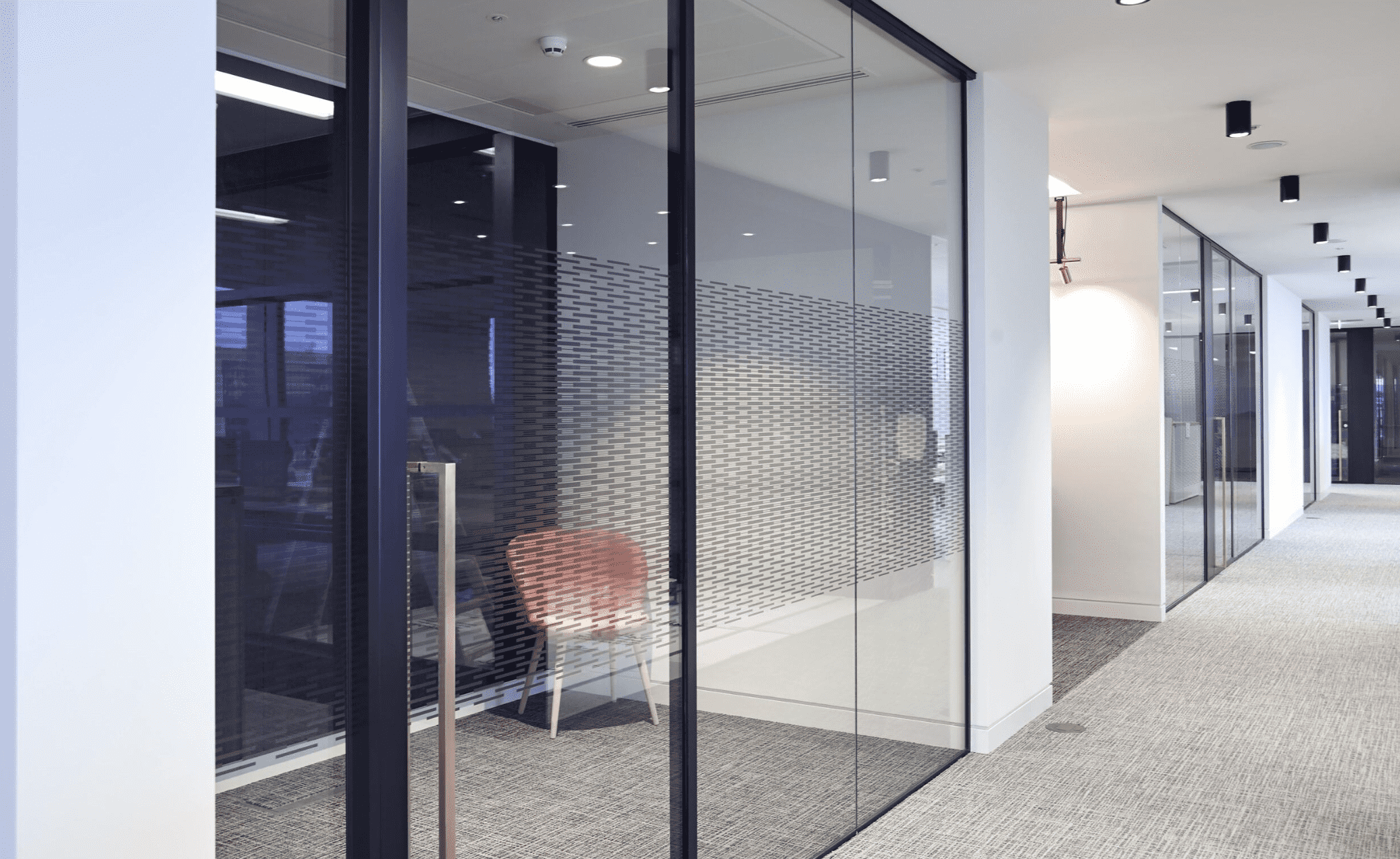 The Kinetic Aero door features 40mm stiles and rails. With acoustic seals to all the edges. The framing profile to the leading edge of the door houses a centrally positioned lock.