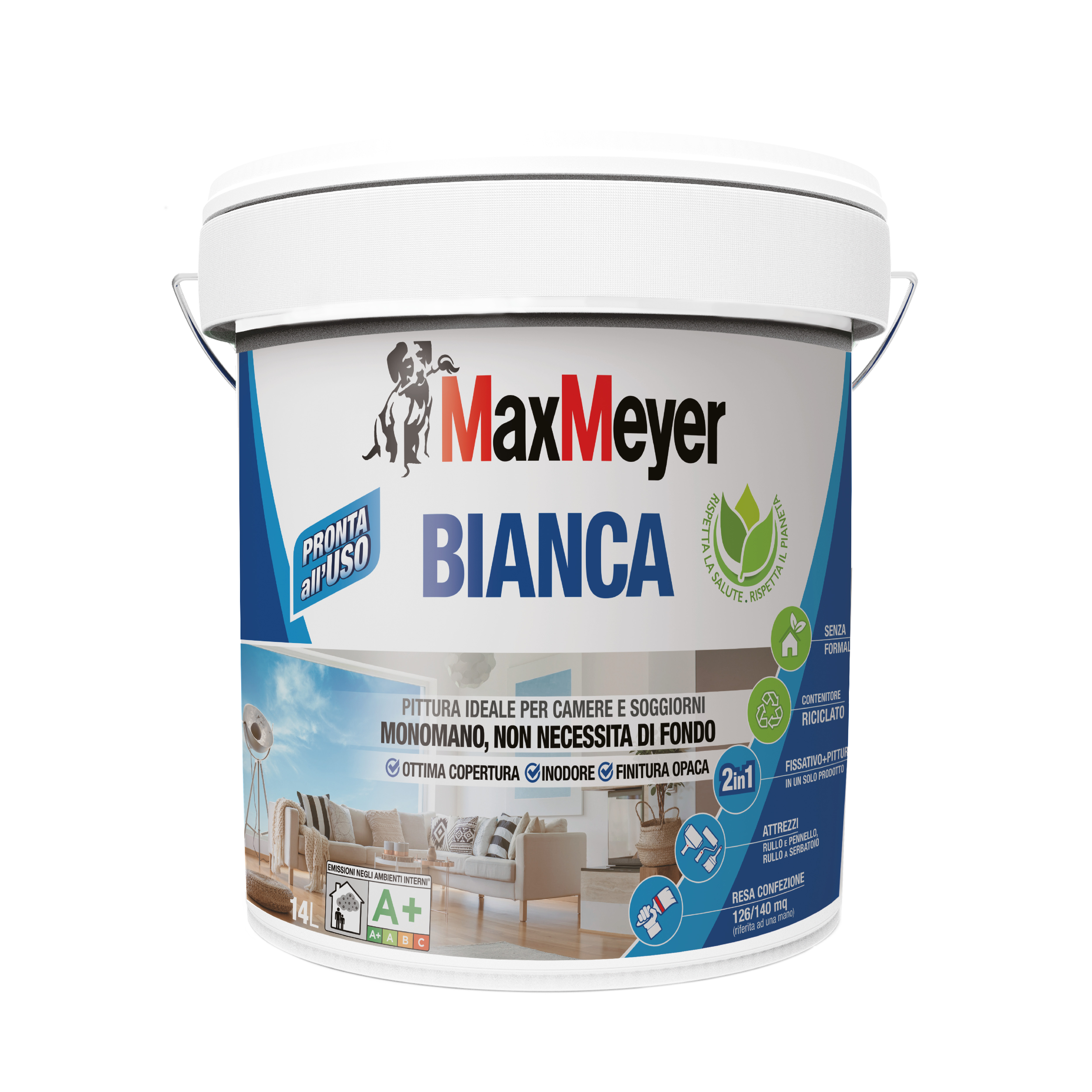 Wall paint with high hiding power, suitable for decoration of smooth surfaces in interior: gypsum-based and lime/cement plasters and plasterboad panels