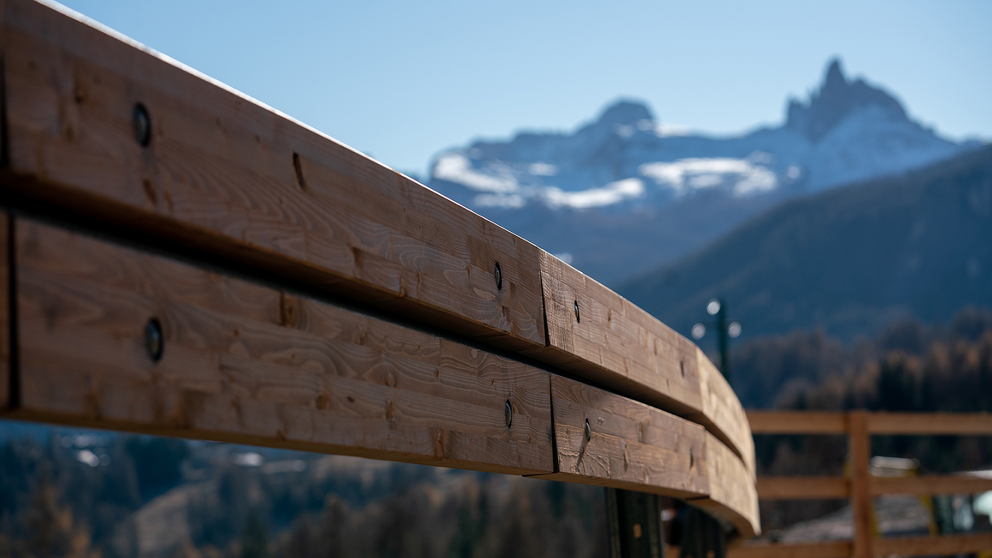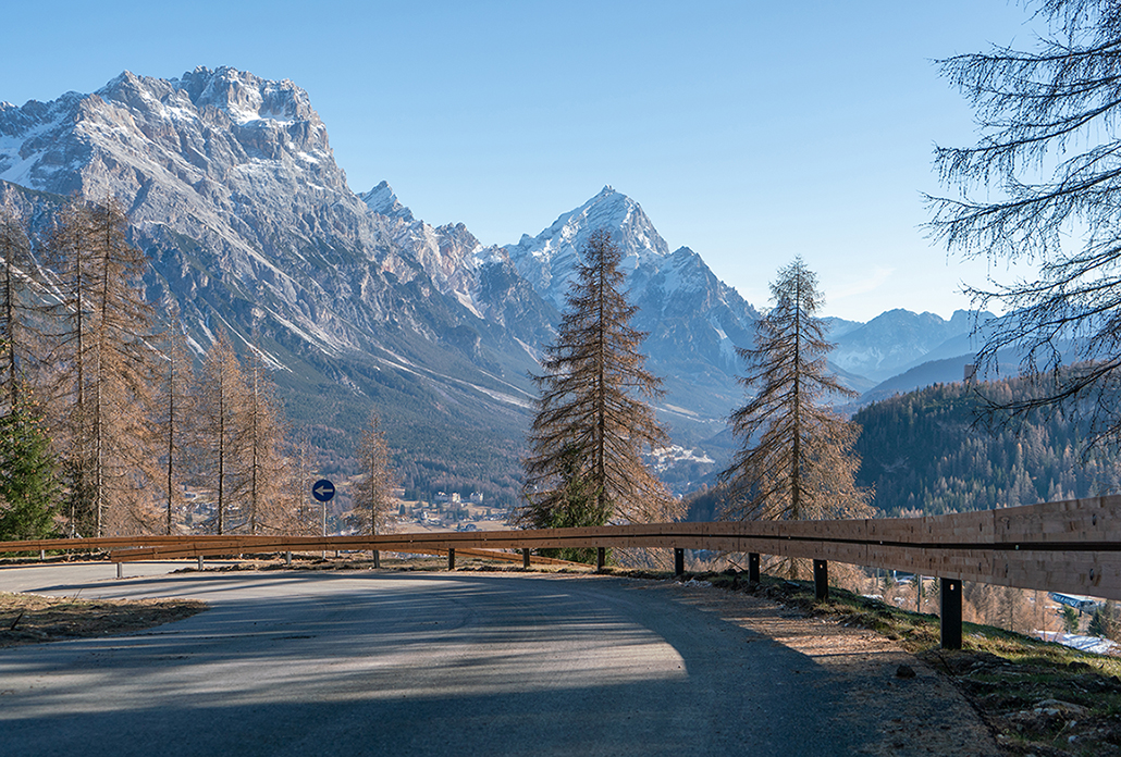 Vertical posts in S355J0WP “CORTEN®” or hot dip galvanized S355JR steel, “C” section, of dimensions 120x80x25 mm, thickness 4 mm and length 1450 mm; driven in the ground for a depth of 775 mm and placed at centers of 2000 mm. A S355J0WP “CORTEN®” or hot dip galvanized S355JR steel W beam horizontal rail is fixed to the posts, with dimensions 4318x310 mm, thickness 2,5 mm. The horizontal rail is completed with the wooden cover of the steel rail; composed of laminated wooden beams 160x60 mm and length 1990 mm suitably shaped and impregnated. The barrier can be repurposed by removing the wooden covering "kit" with the consequent redefinition of the device in a same class certified barrier. The coupling between the steel components is guaranteed by high resistance round head bolts Cl. 8.8 M16x40 (Beam-Post, with the addition of a slot cover plate), and M16x30 (Beam - Beam); nuts and washers. The fixing of the wooden beams to the steel rail is done with round head bolts Cl. 4.8 M16x60; nuts and washers.