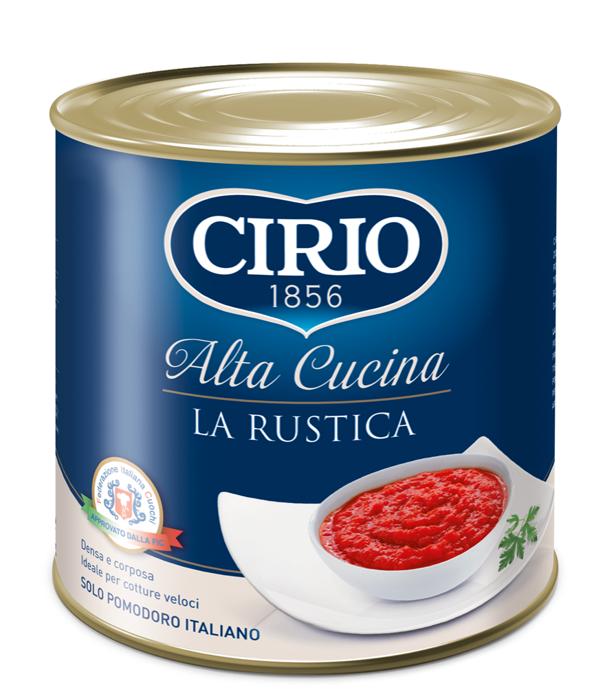 Cirio Sieved Tomatoes “La Rustica” is obtained only from selected tomatoes, using only tomatoes come from certified integrated production, harvested and processed on the same day.