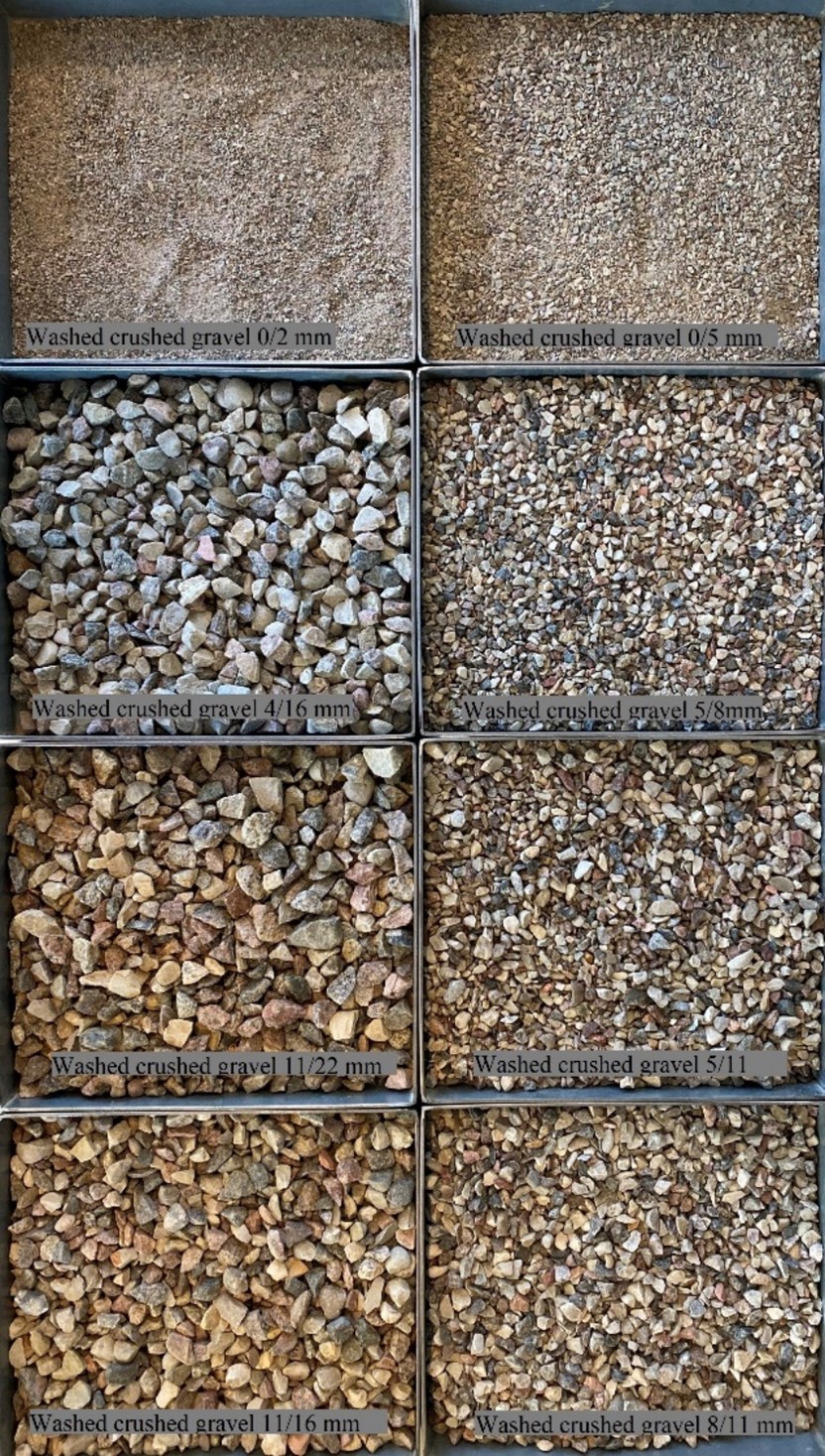 The aggregates covered in this EPD consist of 100% natural sand, gravel, and crushed gravel. Aggregates are classified by particle size and consistency. They can be subdivided to natural stone aggregates (sand and gravel) and crushed aggregates (stone chippings and crushed stones).
