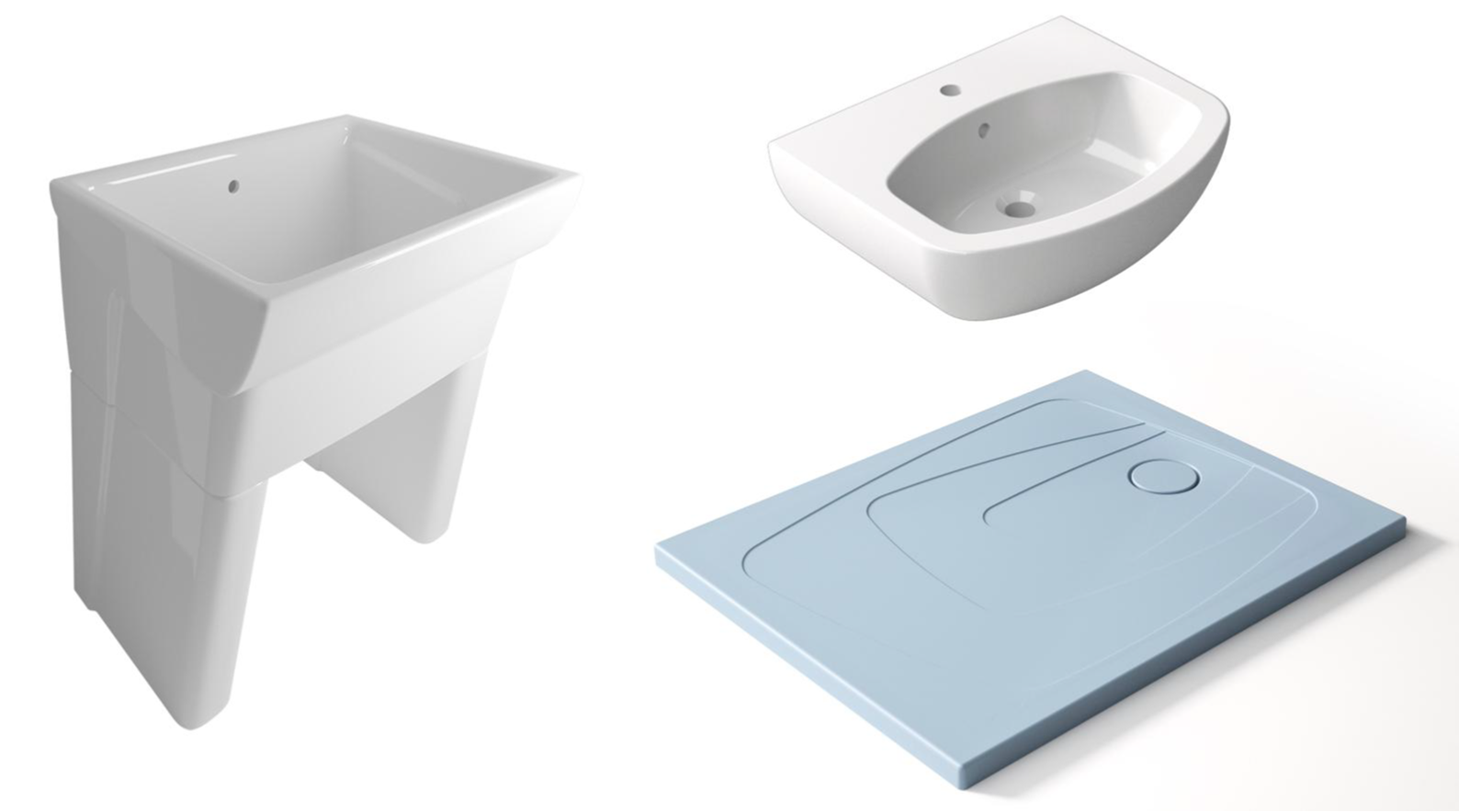 The base material of the ceramic consists of natural materials: clay, kaolin, quartz, talk, silicate, soda and feldspar. These are poured into plaster or plastic molds (pressure casting process).