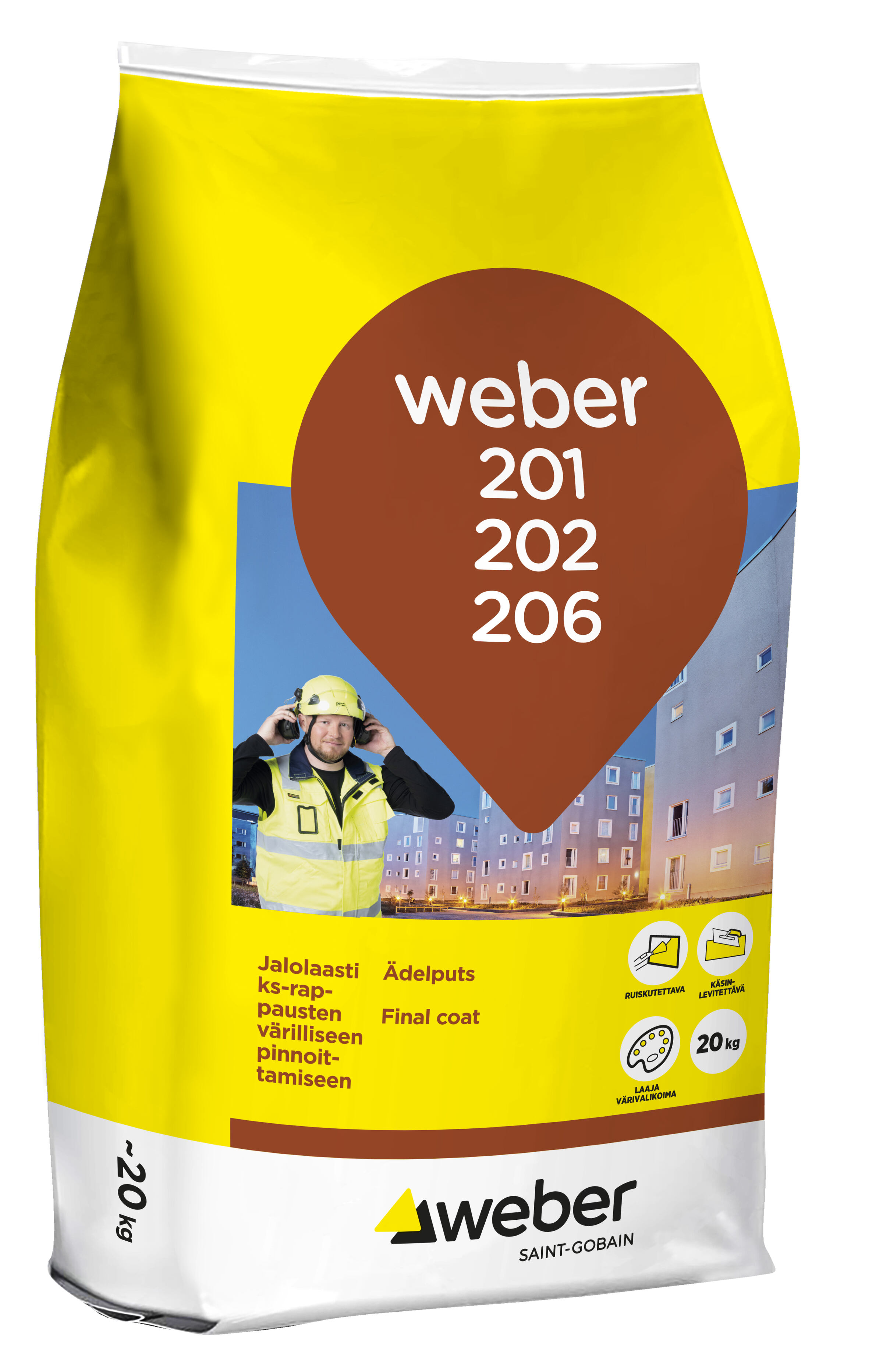 weber 201 Final coat scratch White T001 is white-colored lime cement plaster for coating lime cement rendering. It is a durable product that ages beautifully. The same product can be sprayed and rubbed. The Final coat mixture ratio is LC 50/50/600. The product contains mica to give the coating sheen.