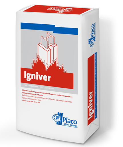 It is a gypsum-based product specially formulated for the fire protection of metallic structures between 15 and 180 minutes, according to UNE ENV 13381-4 ‘Tests to determine the contribution to the fire resistance of structural elements. Part 4: Protection applied to steel elements' and UNE ENV 13381-5 ‘Tests to determine the contribution to fire resistance of structural elements. Part 5: Protection applied to mixed concrete / profiled steel sheet elements’ standards.