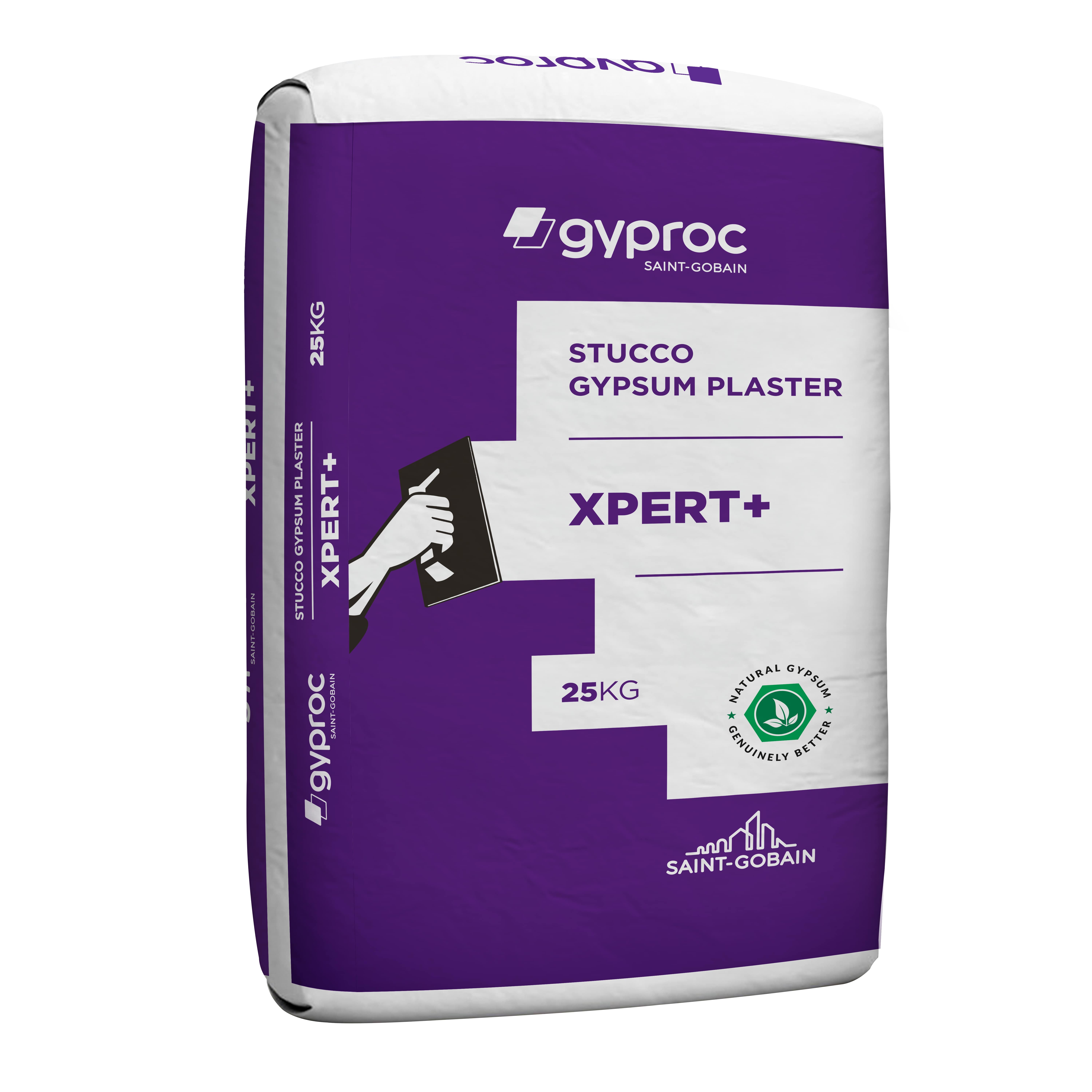 Gyproc Xpert+ is a stucco gypsum plaster made for application on almost all backgrounds, e.g. brickwork, block work or concrete, suitable for application like POP punning (over Sand & Cement Plaster). It has special additives for enhanced setting time helps in controlling the onsite wastages. It provides perfectly lined and leveled surface providing a perfectly flat surface ready for painting.