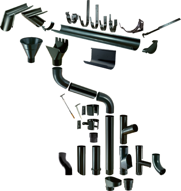 Wijo's roof drainage system is designed to collect and drain rainwater and melted snow from the roof in the most effiecient way. The elements of the roof drainage system include the gutters, downpipes, gutter hooks and other accessories. The elements are made of steel with rubber as sealing material and rivets to join the metal surfaces.