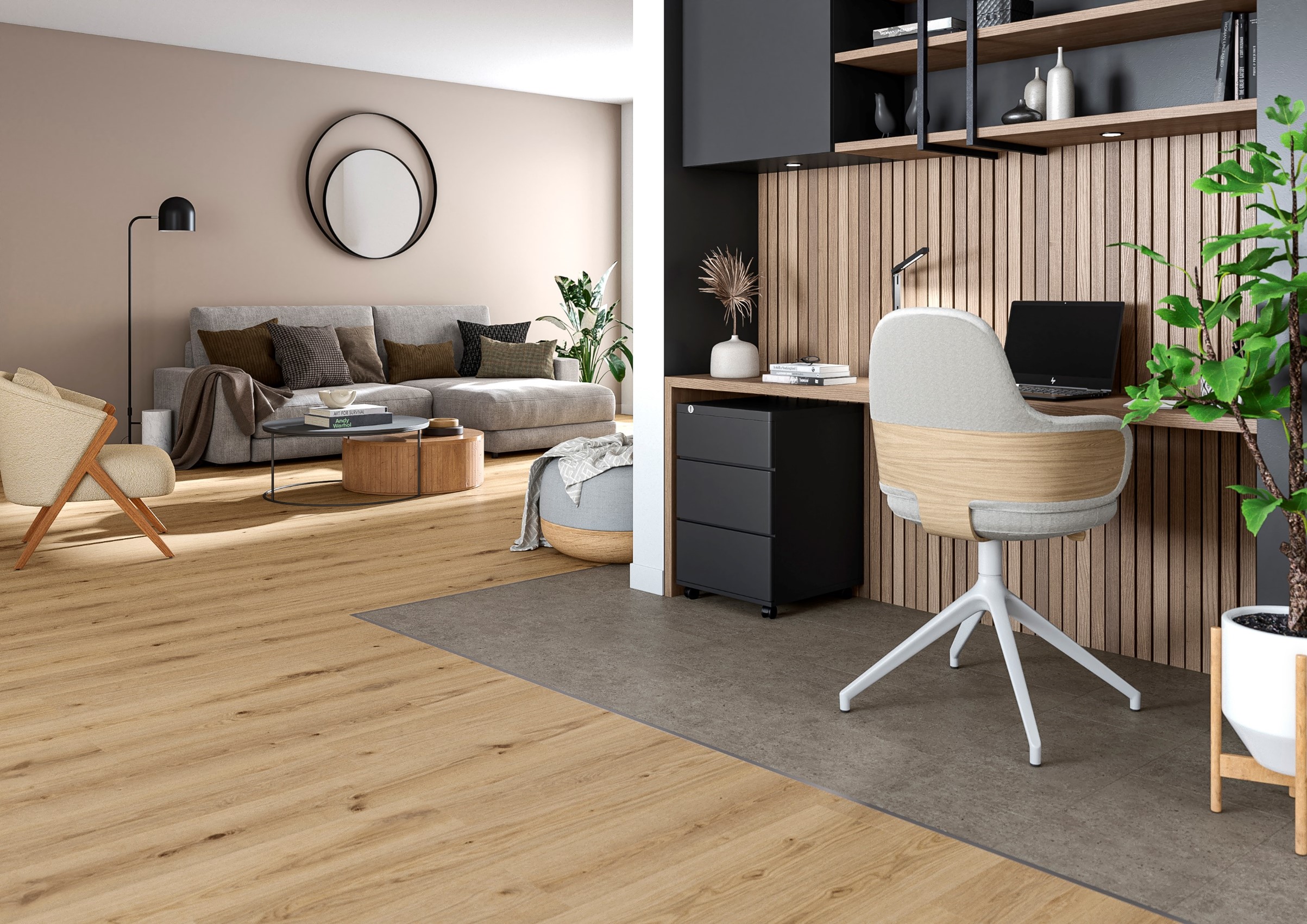 Elegance and Essence Rigid 30/55 are a modular heterogeneous compact resilient floor covering developed by Tarkett. The service lifetime recommended by Tarkett is 25 years.