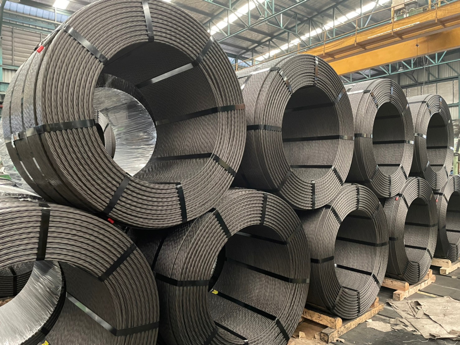 Prestressed Concrete Steel Wire Strand (PC Strand), identified by UN CPC code 41267 - wire of alloy steel is manufactured by The Siam Industrial Wire Co., Ltd., Thailand. This product meets the international standards of: TIS 420 – 1997, AS/NZS 4672 – 2007, ASTM A416 – 2012, ASTM A416 – 2017, BS 5896 – 2012, prEN 10138 – 2006, FprEN 10138 – 2009, JIS G 3536 – 2014, LNEC E 453 – 2011, XP A35 - 045 - 3 – 2017, MS 1138 - 4 - 2007, TSE 5680 – 1988, IS 14268 – 2017, UNE 36094 – 1997, SFS 1265 - 3 -2014, SS 212553 – 2013, NEN 3868 – 2001, NBN I 10-003 – 1986, UNI 7676 – 2016 and Nr IBDiM-KOT – 2019. PC Strand is madeof 7 cold-drawn high carbon wire rods with six outer wires and one single wire which is slightly larger in diameter. The wires are spun together in the same direction and with the same laying length which is subjected to final thermo-mechanical treatment (annealing). The final output of the process is an unadjustable strand in the master coil of 20 – 27 net tonnes which is then wound into smaller diameter coils. It is typically used in pre-stressed concrete girders, bonded post-tensioned flooring system, hollow-core slabs, as well as ground and rock anchors.