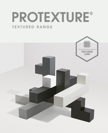 The Protexture range is a collection of popular, highly mar and scuff resistant textured finishes built to protect, delivered with warranty grade advanced highly durable polyester thermosetting powder. Recommended usage includes exterior residential and light commercial buildings less than 4 levels, commercial fitouts, furniture and aftermarket automotive equipment.