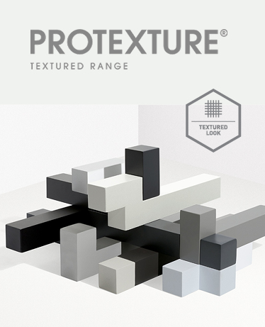 The Protexture range is a collection of popular, highly mar and scuff resistant textured finishes built to protect, delivered with warranty grade advanced highly durable polyester thermosetting powder. Recommended usage includes exterior residential and light commercial buildings less than 4 levels, commercial fitouts, furniture and aftermarket automotive equipment.