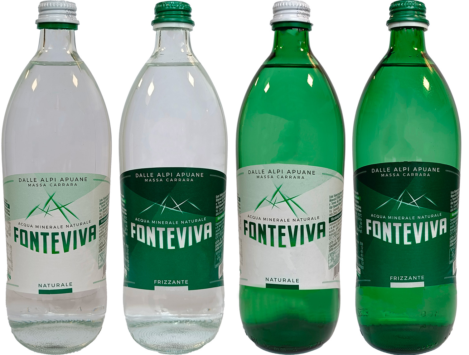 Bottled still and sparkling mineral water, coming from the Fonteviva natural spring in the Apuan Alps.