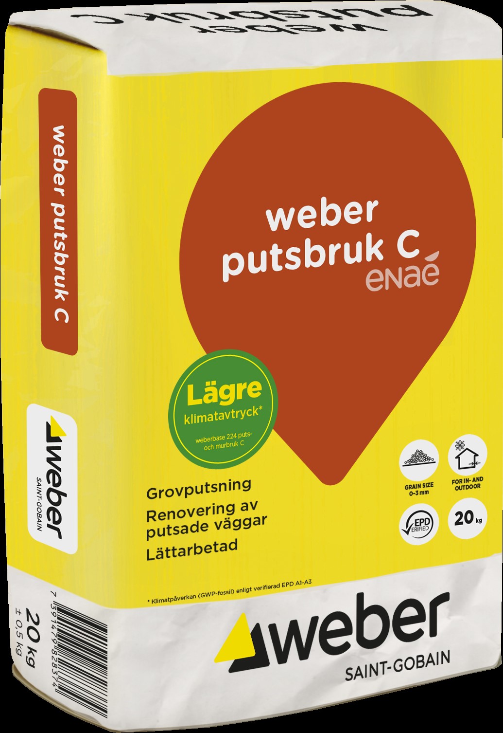 weber putsbruk C ENAE basbruk is a factory made dry mortar based on cement and well graded natural sand as aggregates. When mixed with water, it's ready to use render for indoor and outdoor use. Pumpable. (Replace 134 and 224)