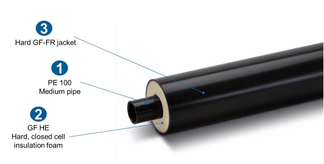 The investigated product system is the GF Piping Systems' COOL-FIT 2.0F comprising of a system of components. It is a substitute system with a pre-insulated, corrosion and condensation-free solutions designed for the transport of chilled water for a variety of cooling applications. The components of the COOL-FIT 2.0F system include pre-insulated pipes as well as pre-insulated fittings, valves, flexible hoses, relevant jointing technologies and tools.