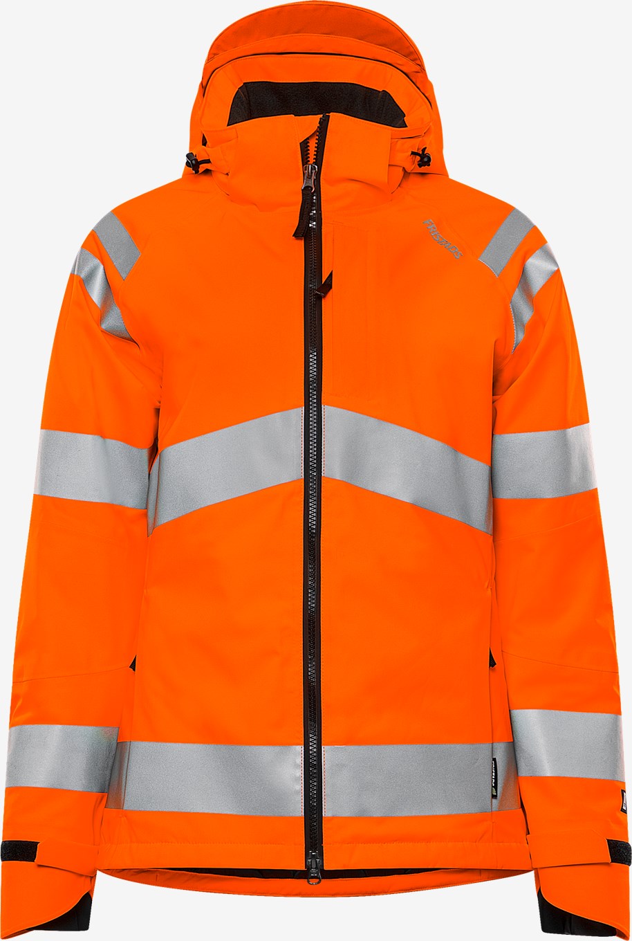 Soft high-vis winter jacket for women made of recycled stretch material. Waterproof work jacket with taped seams and quilted padding which provides soft comfort and great functionality while keeping you warm and dry. Concept: Trofta