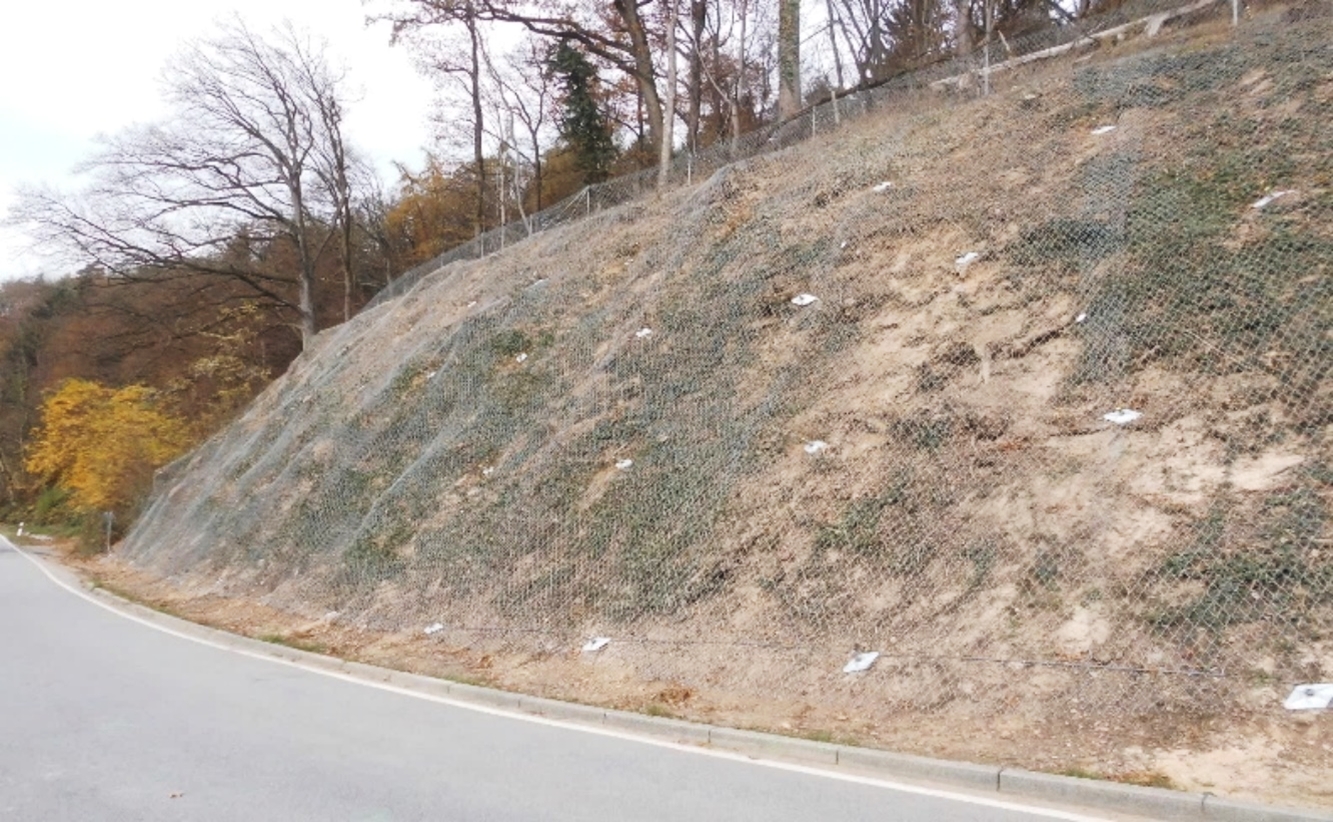 The high-tensile chain-link mesh made of coated steel wire can be used to stabilize virtually any kind of slope, whether it consists of rock or loose soil.