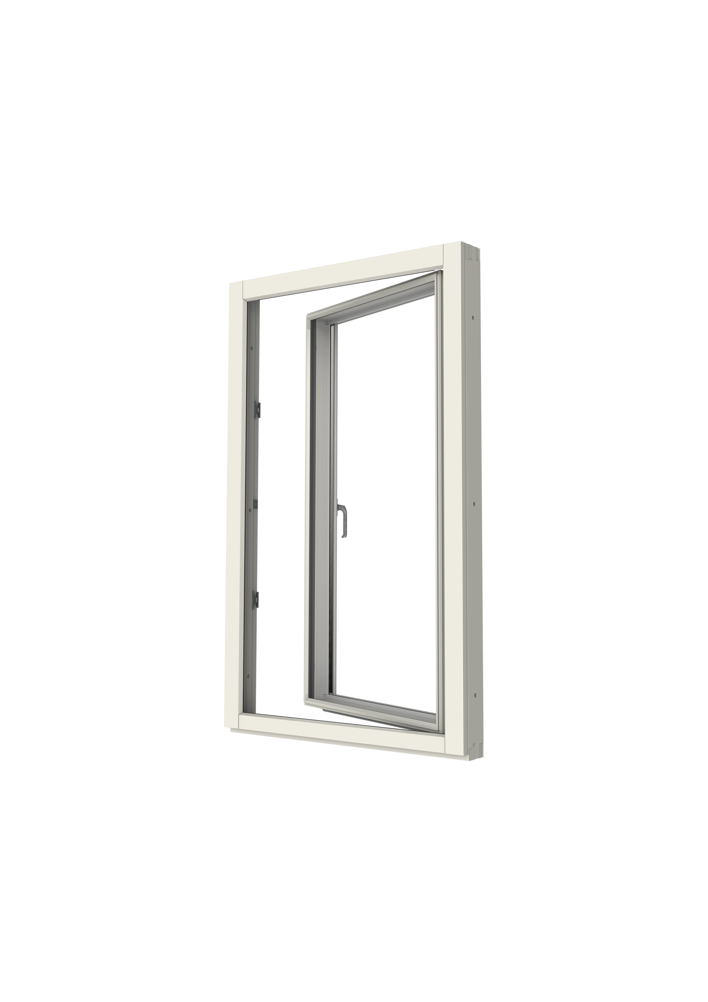 Elitfönster Harmoni Inward opening 2+1 Kd window is a window that can be opened both as a side-hung window and inward for ventilation. The casement consists of two connected sashes, the inner casement consists of wood with a mounted insulating glass with two glasses, the outer casement is made of aluminum with a simple float glass. The casement is attached to the frame via a fitting system that enables opening in the same way as a side-hung window and creates the opportunity for ventilation by angling the casement inwards.