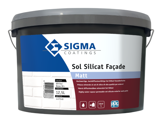 Sigma Sol Silicat Façade is a highly water-vapour-permeable sol-silicate exterior wall paint.