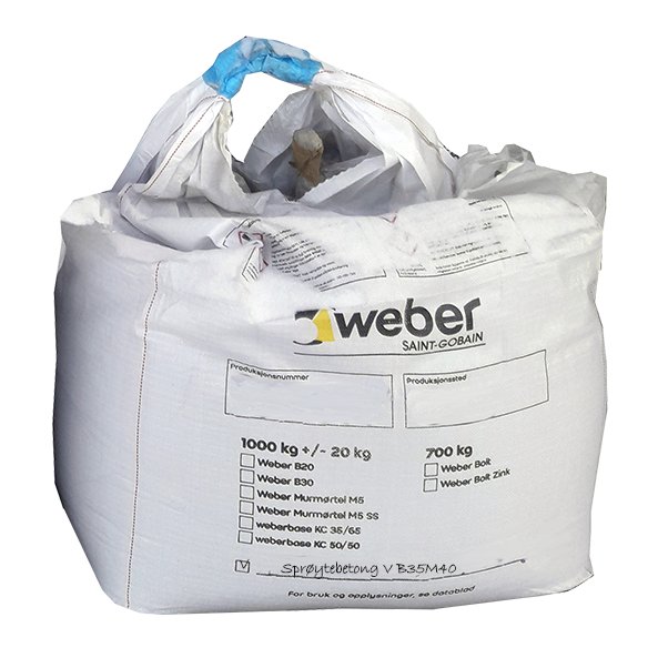 weber Sprøytebetong V is a sprayable dry premix mortar. When the product is mixed with water in a normal concrete/mortar mixer, weber Sprøytebetong V is a readyto-use mortar for all types of spray works. The mortar can be used both indoors and outdoors.