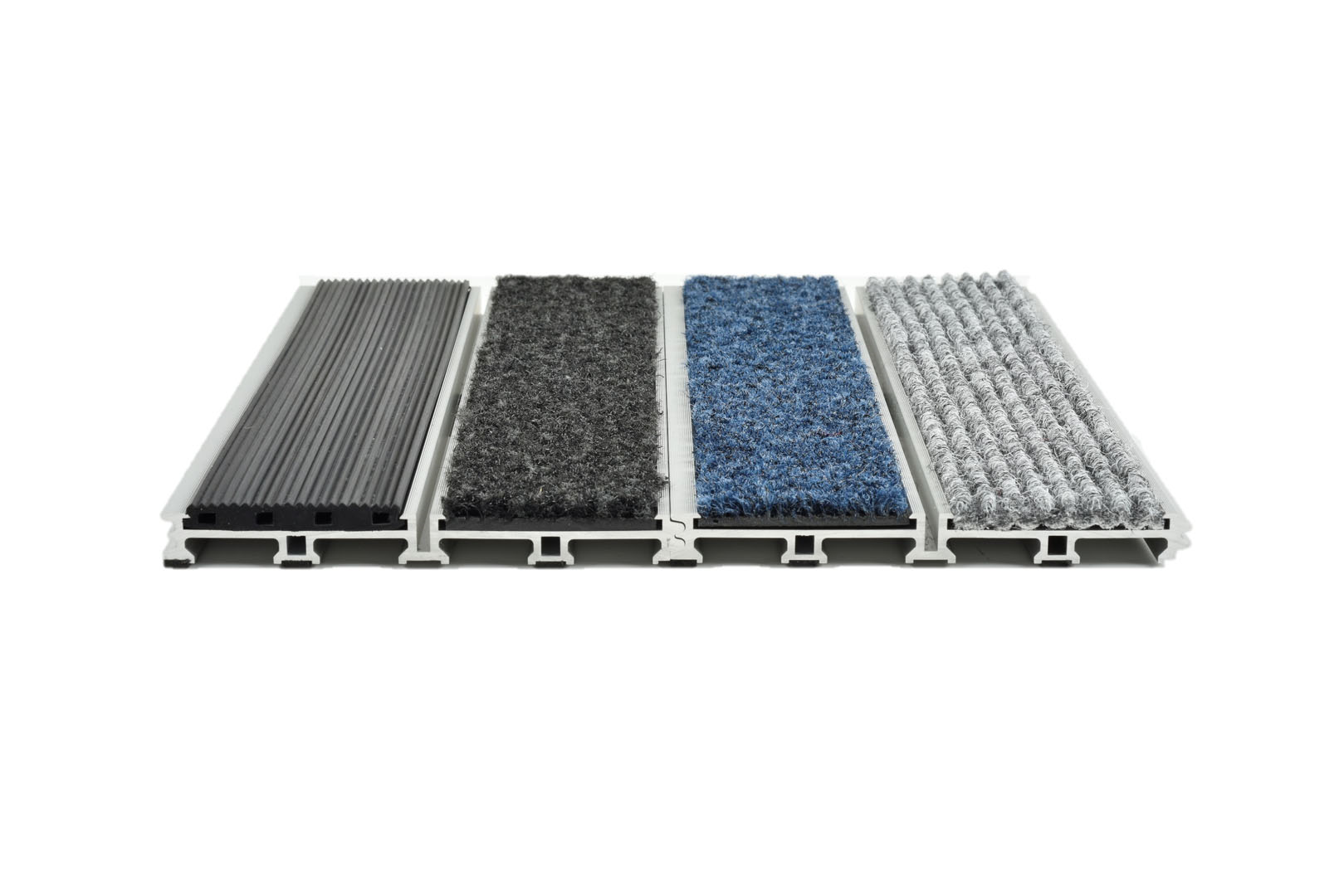 Like INTRAflow but with double module fibre inserts and ultra-heavy-duty, interlocking aluminium planks; featuring an open or closed channel for effective debris and moisture removal. Ideal for open or exposed areas with extreme footfall traffic. We use 100% recycled aluminium (29% post-consumer) and offer a wide range of 100% Econyl fibre inserts.