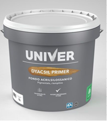 Acryl-siloxanic water-based primer with excellent filling properties. Due to the arcyl-siloxanic nature DYACSIL PRIMER has high breathability properties. Applicable on internal and external wall surfaces to mask paches or other superficial irregularties. High breathability class V1 according to the European standard EN1062-1