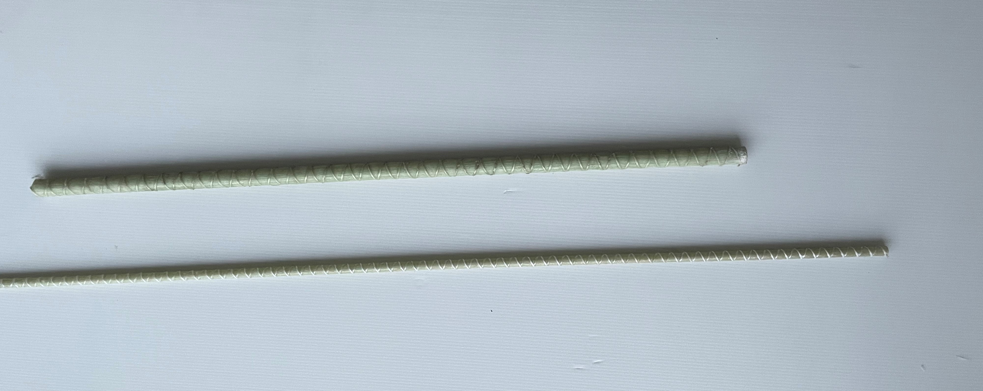 Straight bars, coming directly from the pultrusion process - Bar with ribbed surface with improved adhesion type "RWB-V", nominal diameter 10/18 mm, in vinyl ester resin reinforced with E-CR glass fiber obtained with modified pultrusion technology.