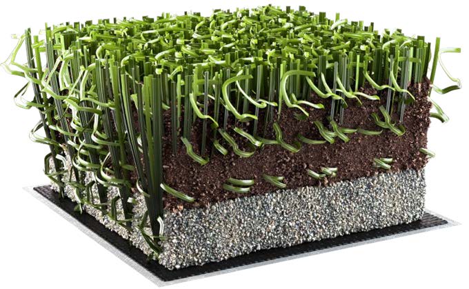 The 62 ALL STAR ECOGREEN GC / 62 DOUBLE X PLUS ECOGREEN GC are sports synthetic turf systems that consist of the 62 ALL STAR ECOGREEN / 62 DOUBLE X PLUS ECOGREEN turf and two completion infills (sand and coloured rubber).