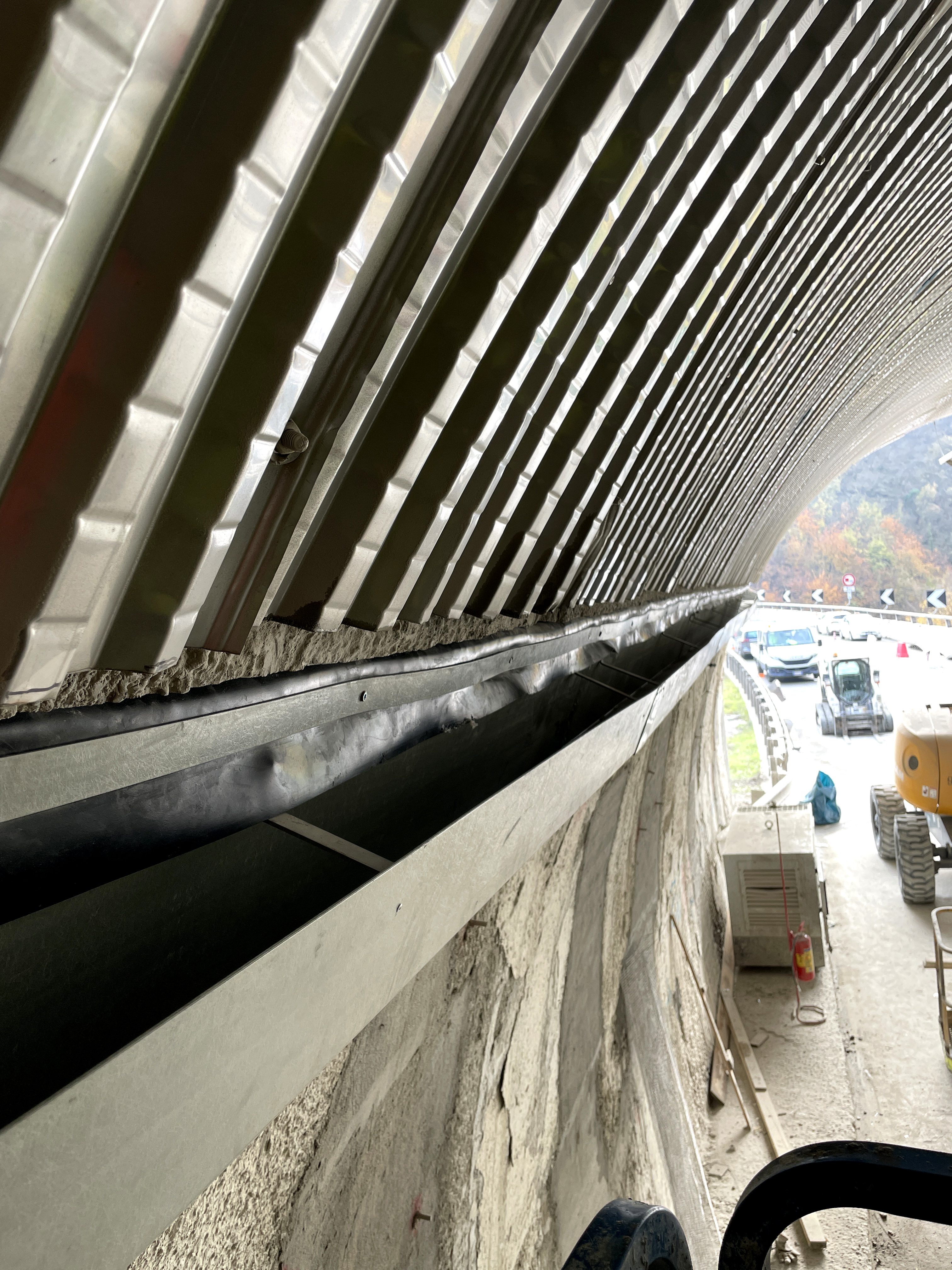 The gutter is made of Glass Fiber-Reinforced Polymer (GFRP), through a pultrusion process. The material has notable mechanical-physical-chemical characteristics, such as high tensile strength, high corrosion resistance and high electric isolation. The GFRP gutter’s section has an inclination equal to 65°, in order to adhere to the tunnel walls; its weight is equal to 4,5 kg/m and its maximum water flow is equal to 25 l/m.