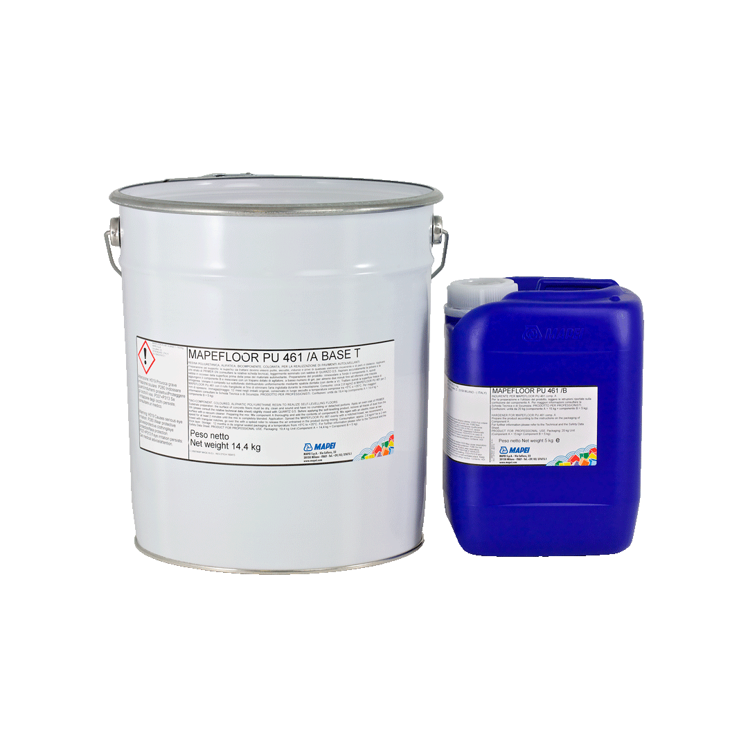 Mapefloor PU 461 (A+B) is two-component elastic, coloured, aliphatic, UV-resistant self-levelling polyurethane resin used to create Mapefloor Comfort System AL, Mapefloor Comfort System AL/S and Mapefloor Comfort System AL/X floor-coating systems. Floors coated with Mapefloor PU 461 are elastic and resistant to UV rays, foot traffic and mild chemicals.