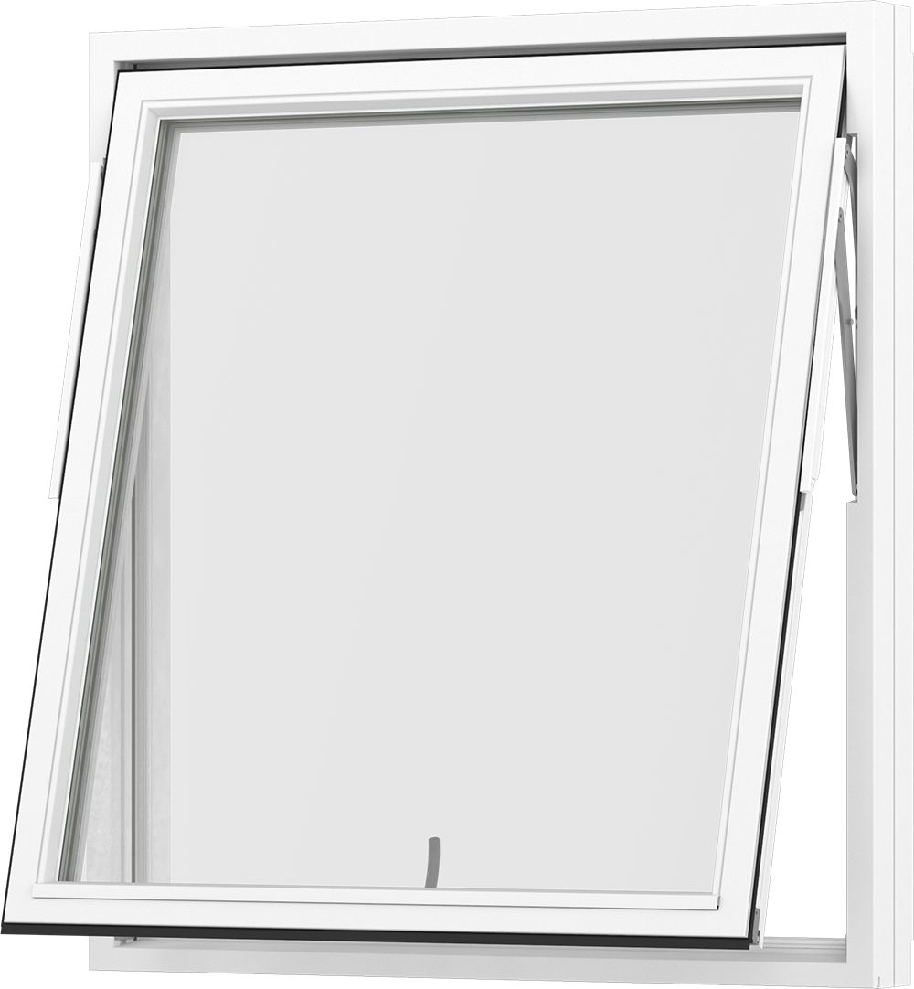 An outward opening wooden top-swing window with a 3-glazed insulating glass. The frame of the window opens outwards and can be turned around 180 degrees outside the facade thanks to the special top-swing hardware, which is practical when the glass is to be cleaned on the outside