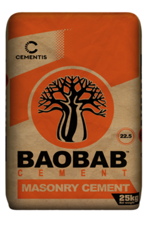 Baobab Masonry Cement has a unique combination of properties that make it ideal for masonry applications. Baobab Masonry Cement is a grade 22.5 cement provides an excellent bond for blockwork, plastering, fixing, repairing, screed and jointing.