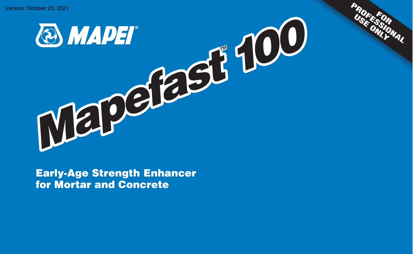 Mapefast 100 is a high-performance chloride-free liquid hardening accelerating admixture that provides exceptional early strength acceleration at low and mid temperature ranges. Mapefast 100 meets the requirements of ASTM C494 Type S and CSA A23.1.