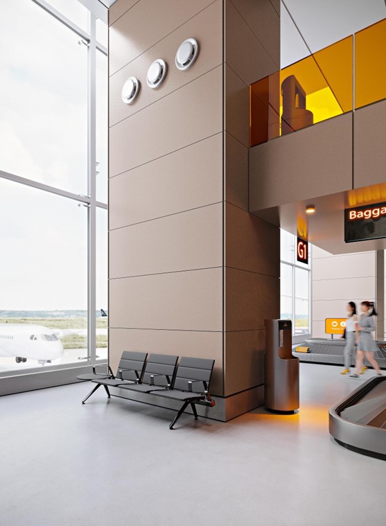 Trespa® Toplab® panels are decorative high-pressure compact panels (high-pressure laminates, HPL). Trespa® Toplab®VERTICAL panels comprise sheets consisting of layers of natural fibres, impregnated with thermosetting resins and pressed under high pressure. The product’s backside finish comes in different variations depending on the panel type (single sided, double sided, duocolour). The so-called single-sided decorative panel comes with a black backside. Trespa® TopLab®VERTICAL is used in demanding environments for cabinetry and wall cladding solutions, special coverings for modular elements, the lining of fume hoods and splash backs.