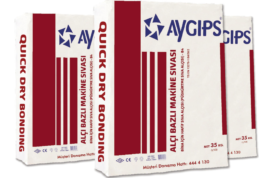Aygips Quick Dry Bonding (Machine Spray) Plaster a perlite gypsum based plaster applied indoors by machine. It is used on brick, concrete, aerated concrete, exposed concrete, pumice and cement based plaster surfaces.