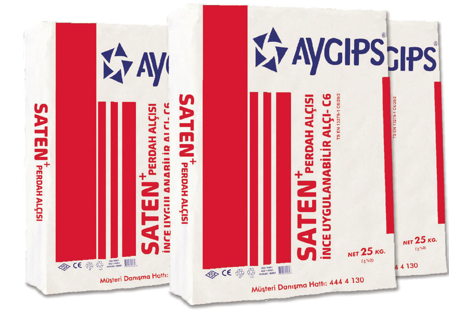 Aygips Satin Finishing Plaster is used for internal thermal isolation applications with adhesion of EPS, XPS, composite plate or rock wool to gypsum plates and during adhesion of gypsum plates to internal space surfaces, such as concrete, bricks, bims block and gross concrete.