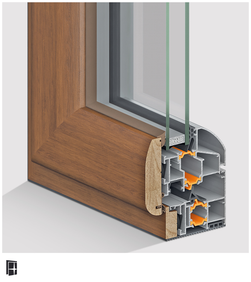 The Superthermic series is a mixed aluminium-wood series with 20 mm polyamide and thermal break; it has a rebated on the interior and a flush on the exterior with open joint sealing system. The product is a 1480x2180 double-glazed window.
